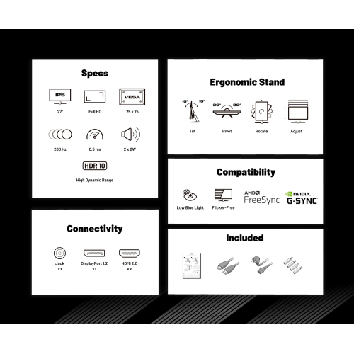 JAPANNEXT Monitor 27" IPS 200Hz 0.5ms Full HD, Height & Tilt Adjustment (HSP) Integrated Speaker, G-Sync/FreeSync