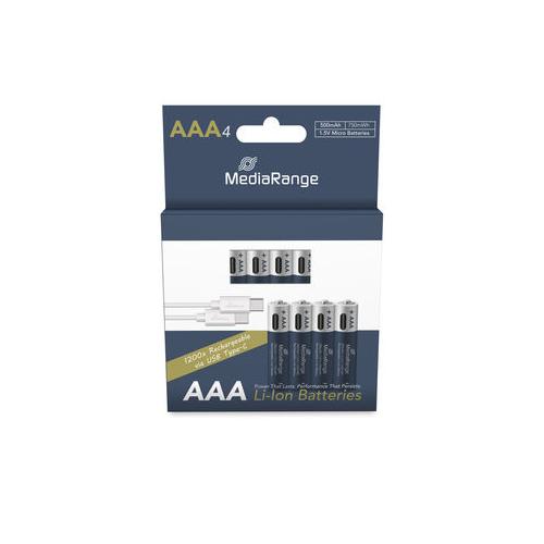MediaRange Rechargeable USB-C Li-Ion Batteries,Micro AAA I 1.5V I 500mAh, 4-Pack